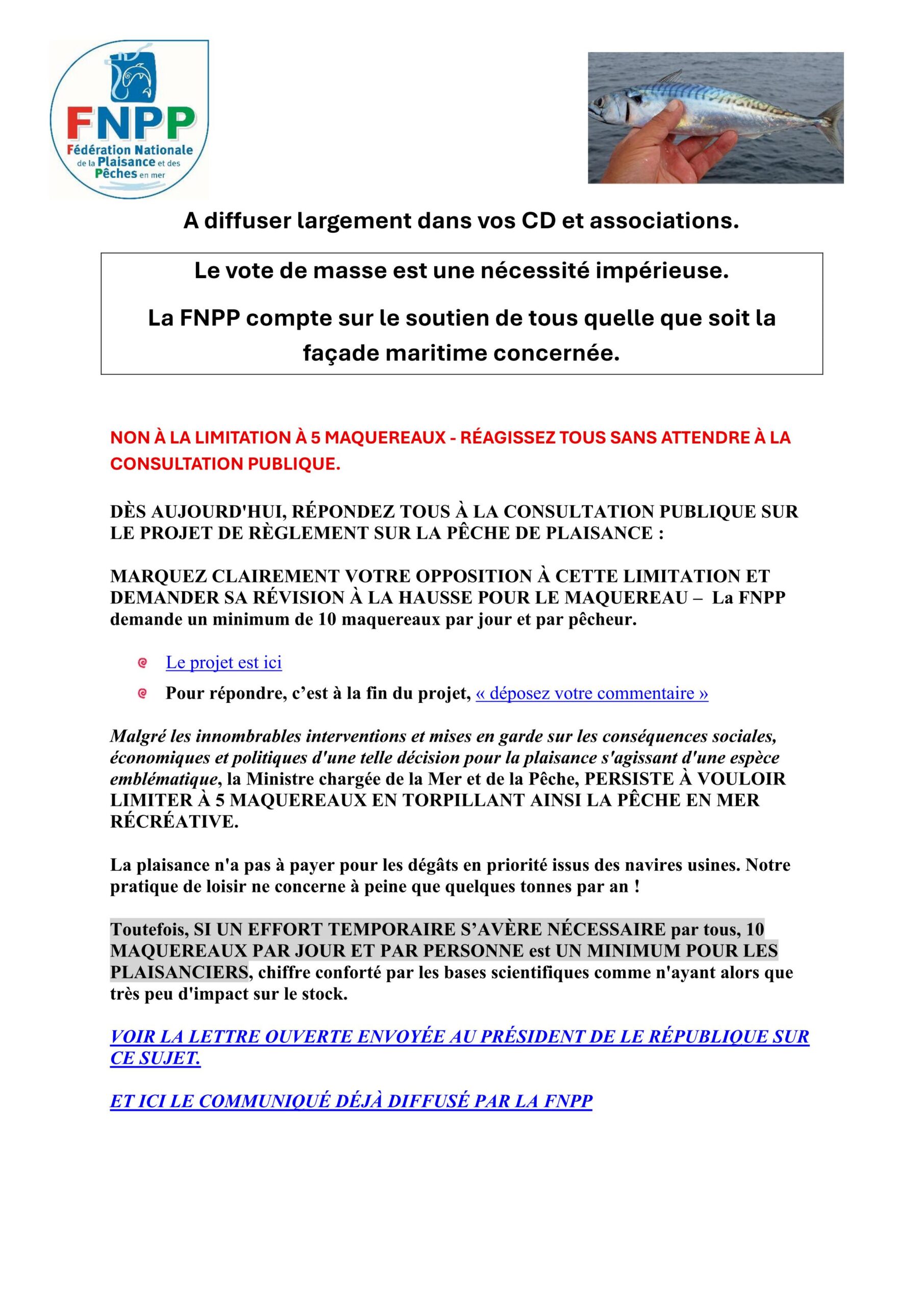 Non au quota de 5 maquereaux par jour et par personne